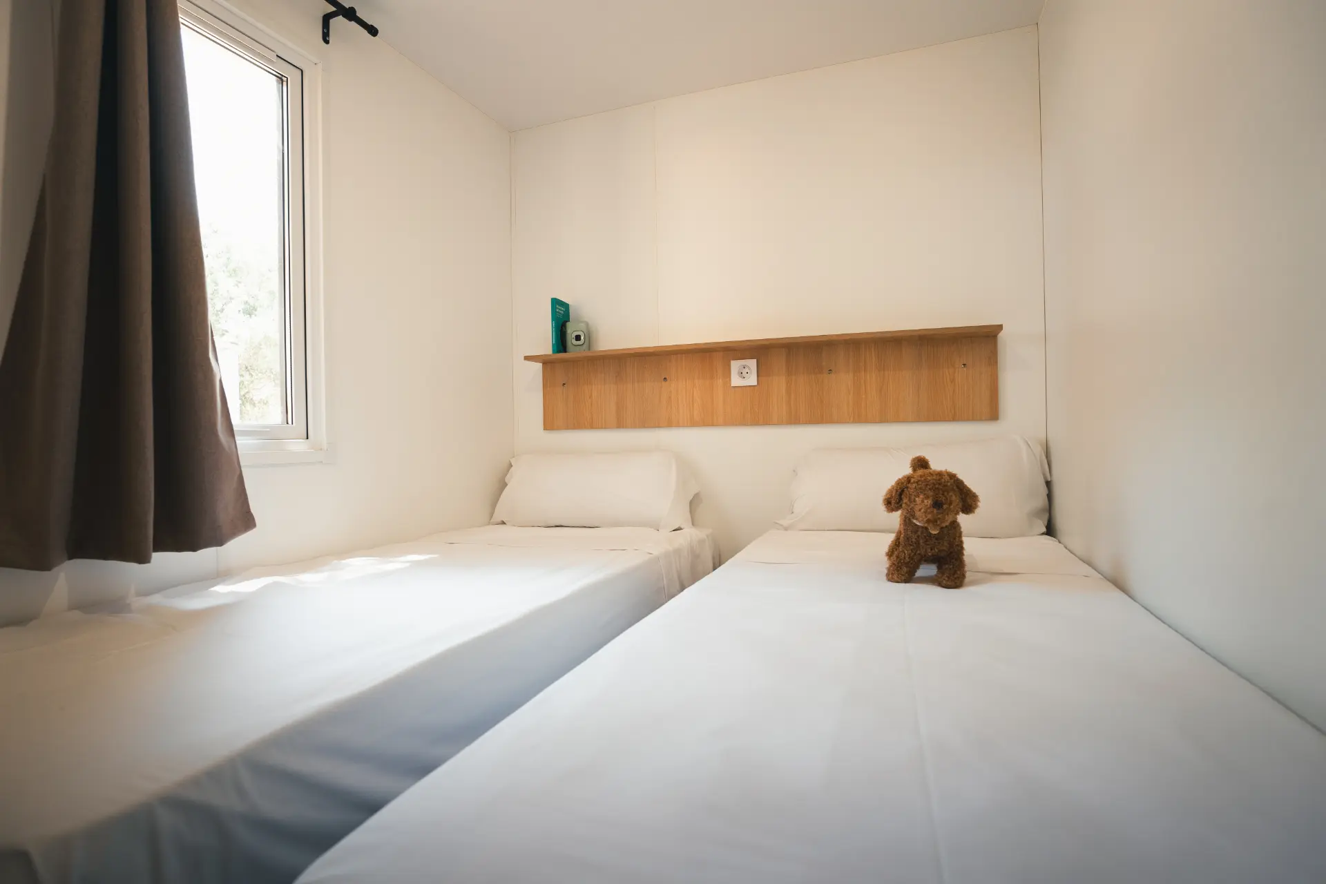 Este bungalow ofrece comodidad y espacio para hasta 6 personas, y se abre hacia el exterior con una fantástica terraza. Disfruta del entorno ideal para unas vacaciones perfectas. En HolaCamp, creamos espacios pensados para todo tipo de familias, para que se convierten en el escenario de vuestros mejores momentos. ¡Bienvenid@s a vuestras vacaciones perfectas!