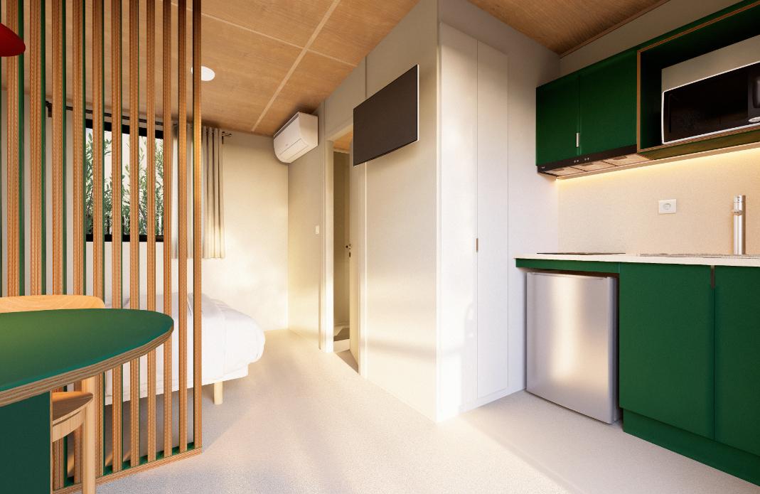 Un espace tout-en-un, conçu pour deux personnes en quête de praticité et de proximité avec la nature.