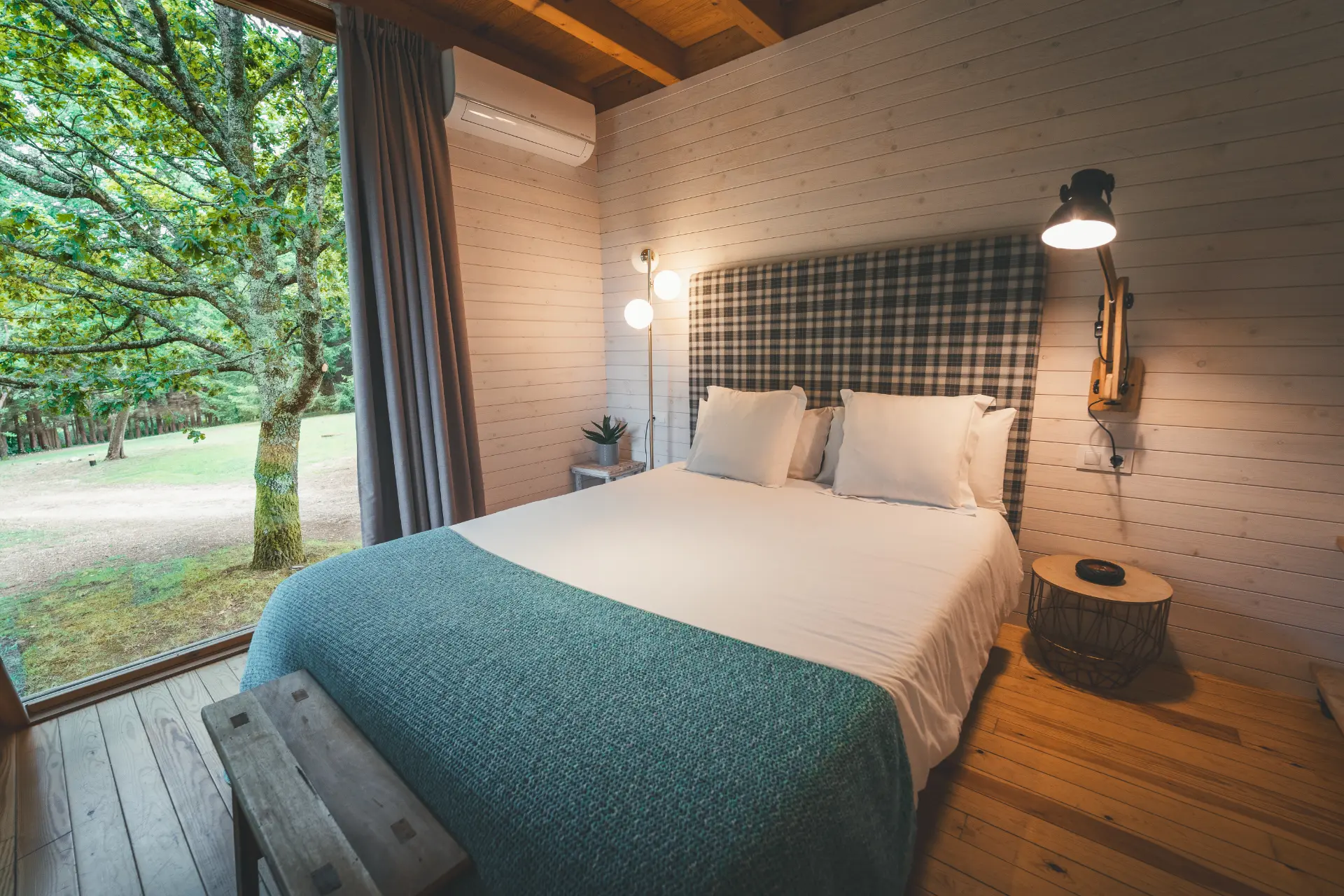 Uma cabana possui um amplo terraço, ideal para desfrutar dos livros, e um jacuzzi para adultos e crianças relaxarem e se divertirem. No interior, encontrará uma sala com kitchenette, cozinha equipada e casa de banho, tudo pensado para o seu conforto.